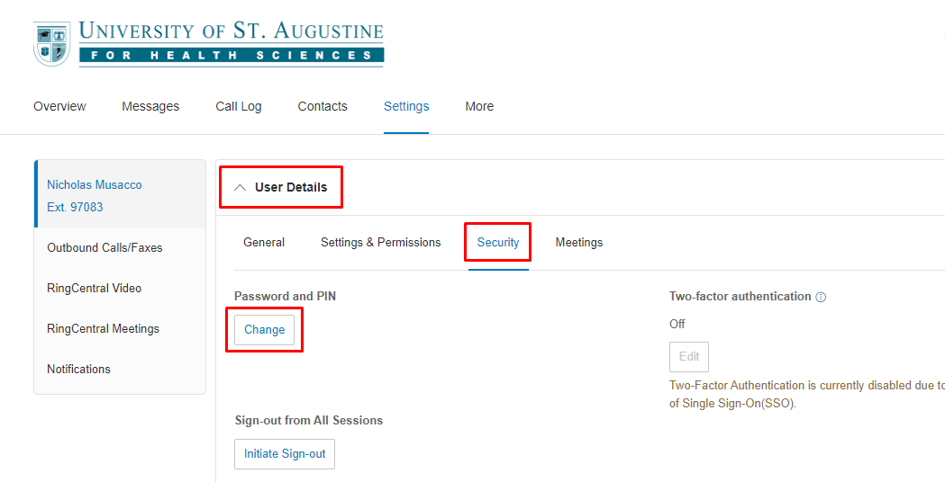 - Log in to the RingCentral online account. Start at https://login.usa.edu and click on the RingCentral tile