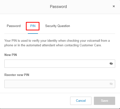 - Click the Change PIN tab