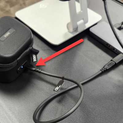 Remove the receiver from the charging case. The receiver is larger than the two microphones.