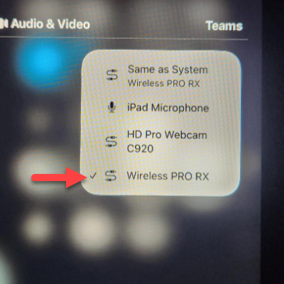 Exit the Teams audio controls, then ensure audio is turned off to turn off iPad speakers.