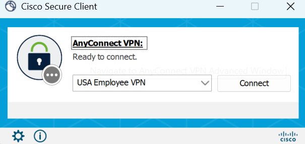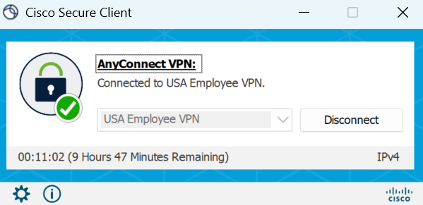 Ensure the VPN has USA Employee VPN in the profile selection and connect