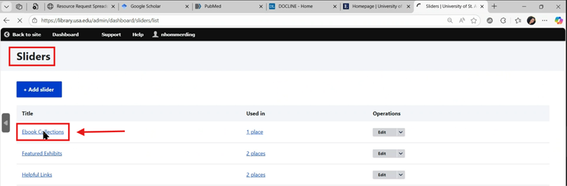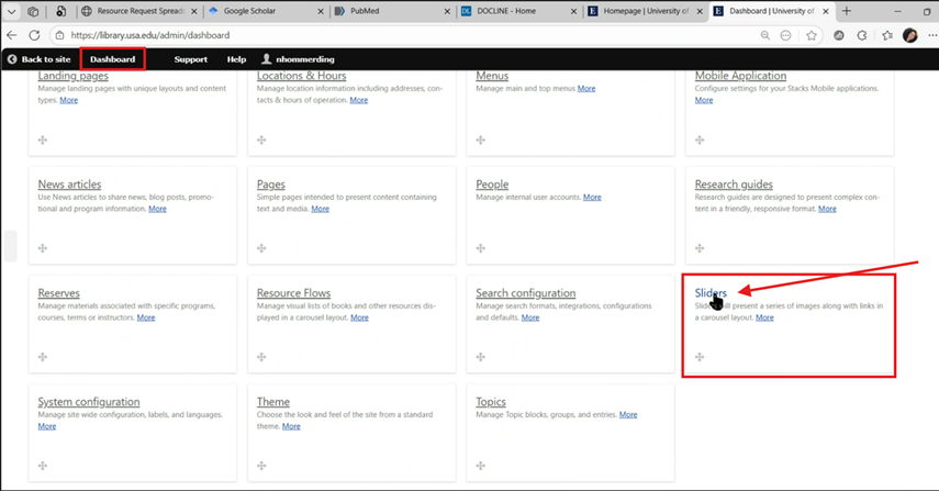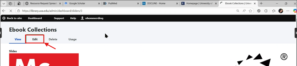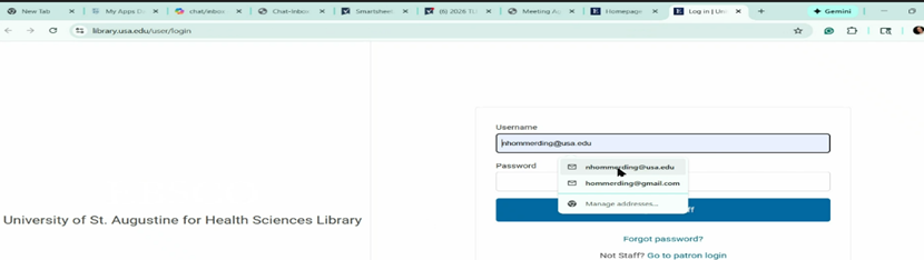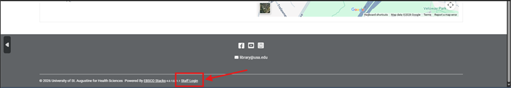 Navigate to: https://library.usa.eduScroll to the bottom of the page and click Staff Login.