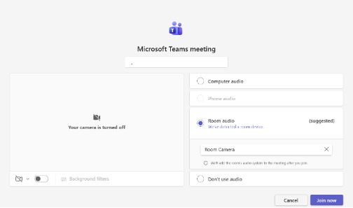 Select 'Room audio' and ‘Room Camera’ if prompted